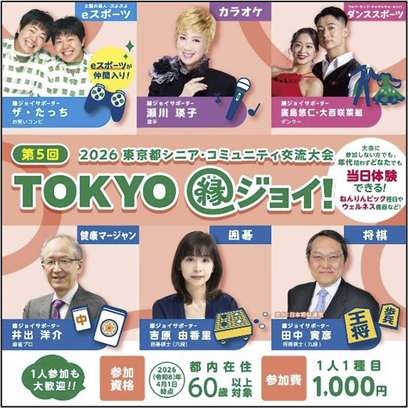 『“TOKYOジョイ!”2026東京都シニア・コミュニティ交流大会』は、シニア世代が日頃趣味として親しんでいる種目の交流大会として開催。