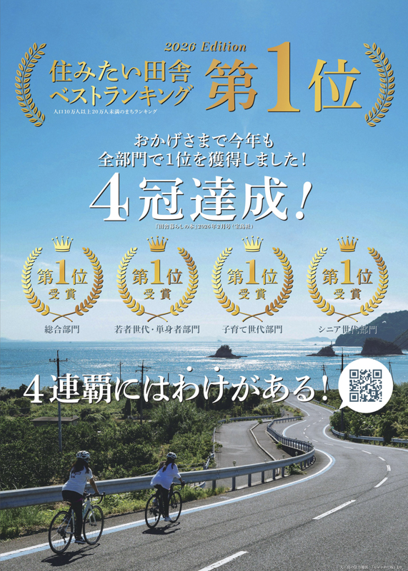 今治市は、子育て支援、若者定着策、移住希望者への支援体制などを継続的に整備してきた結果、「住みたい田舎ベストランキング」において4年連続で全4部門1位を獲得しました。