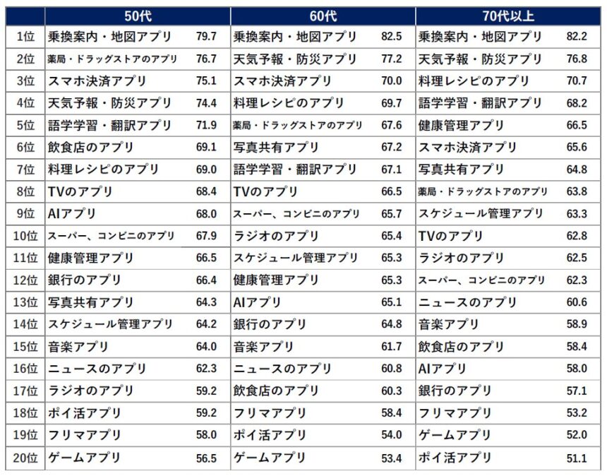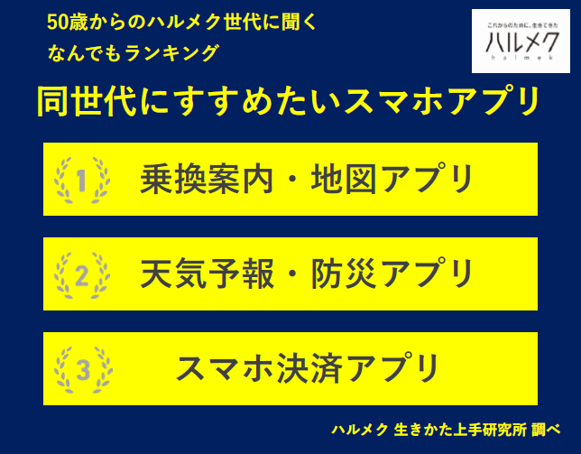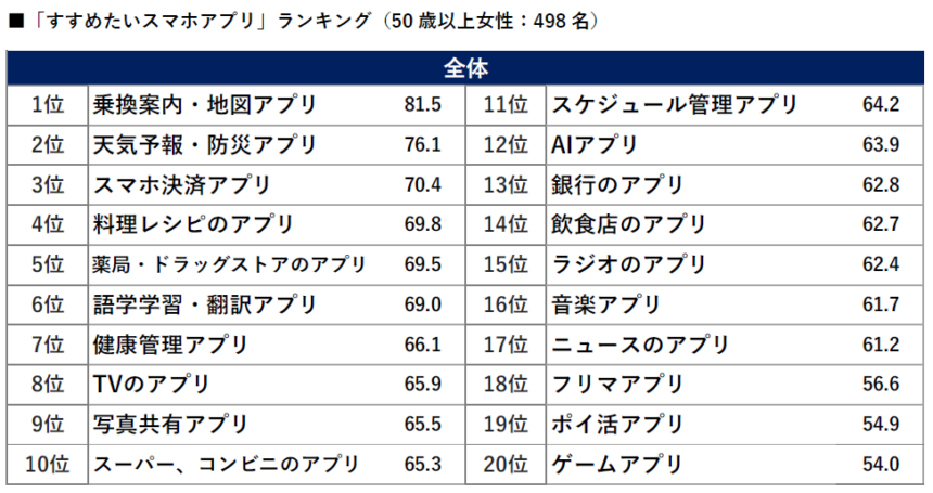 以上、50代から80代シニア女性の「同世代におすすめしたいスマホアプリ」ランキングでした。