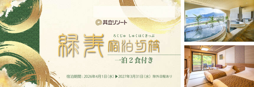 ホテルやリゾート事業を展開する株式会社共立メンテナンスが販売する「緑寿(ろくじゅ)宿泊切符」は、全国の温泉地や観光地をお得に巡ることができる宿泊回数券です。