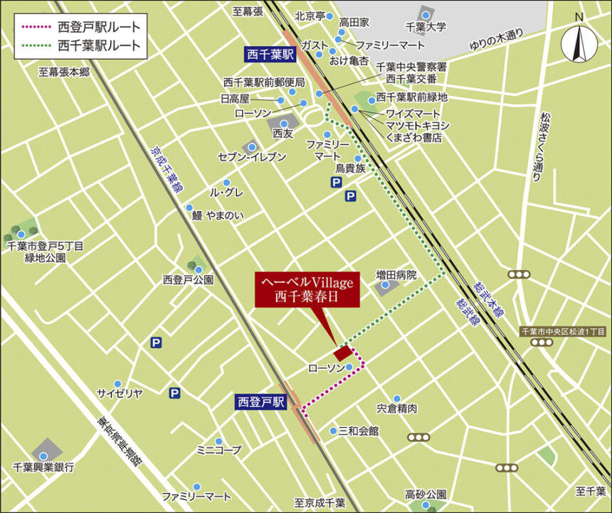 - 京成線 西登戸駅より徒歩3分、JR総武線 西千葉駅より徒歩8分
