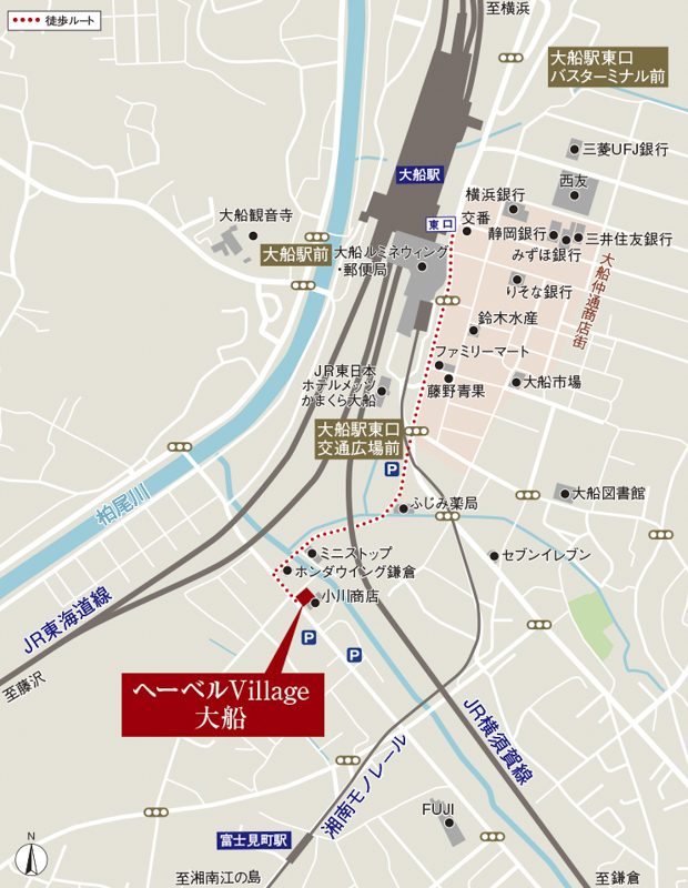 - JR湘南新宿ライン、東海道線、横須賀線、京浜東北線・根岸線、横浜線・根岸線、湘南モノレール 大船駅より徒歩8分